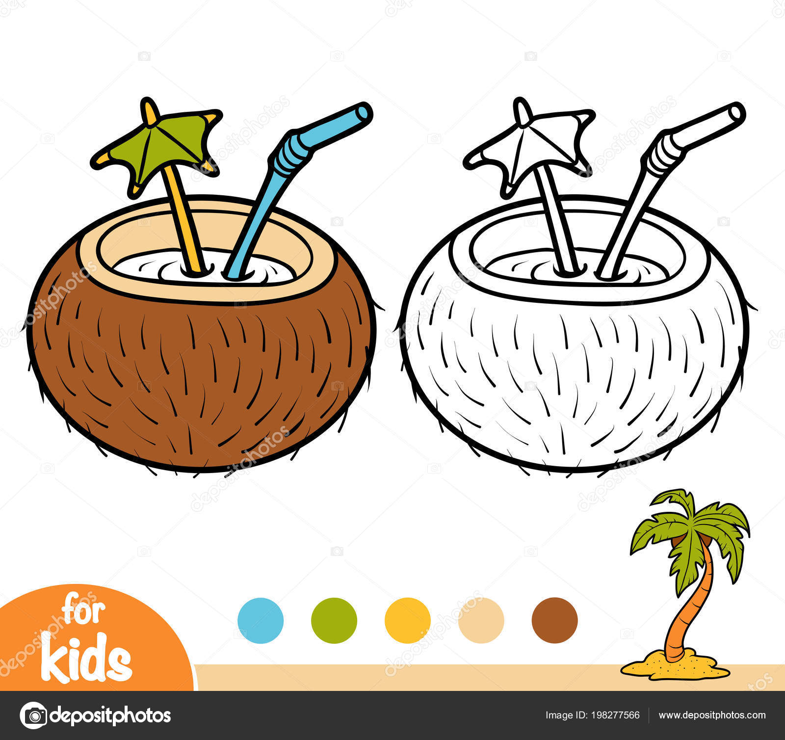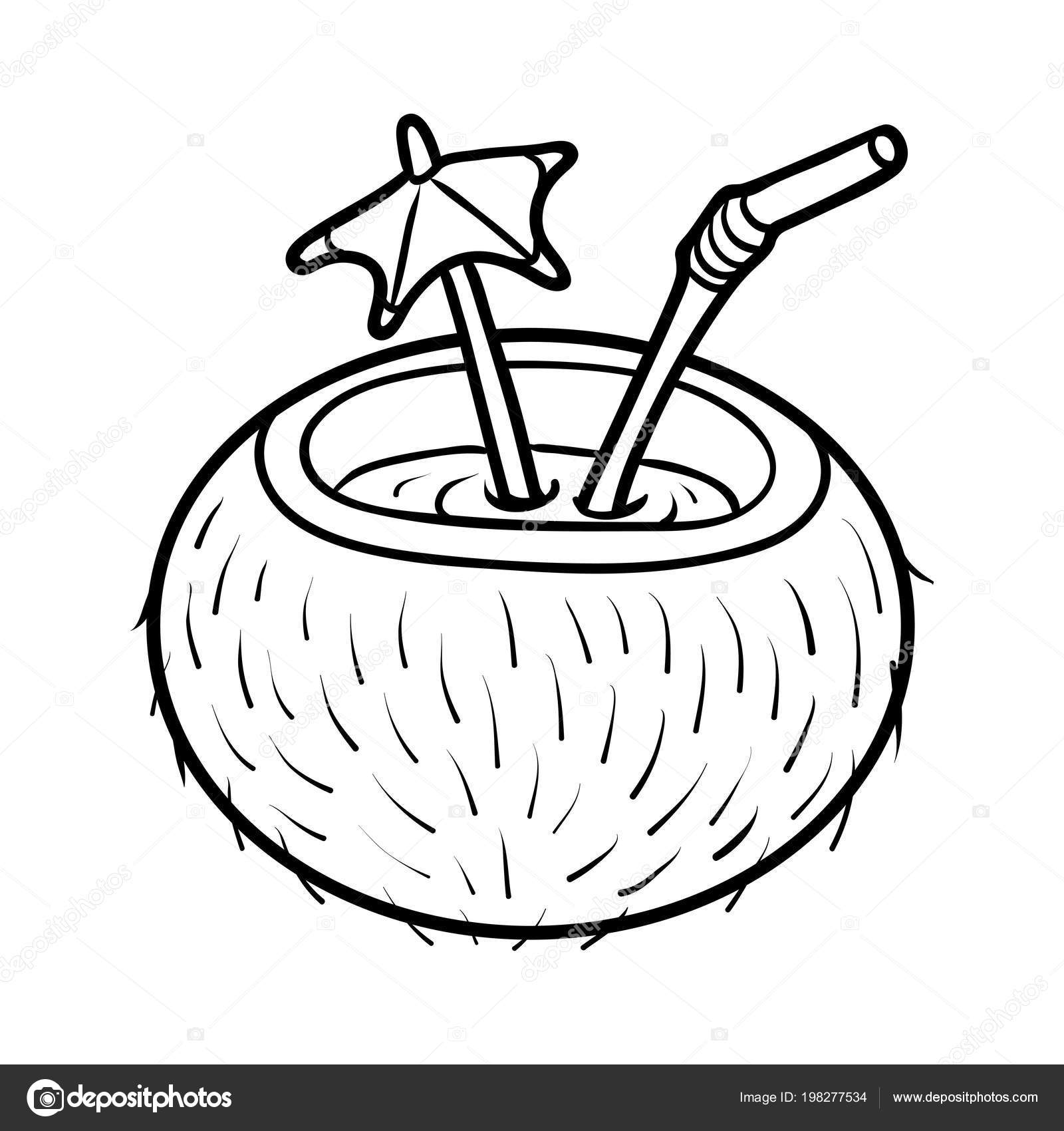 Libro Colorear Para Ninos Coctel Con Paja Coco Archivo
